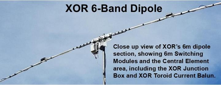 The design of XOR’s HF rotary dipole antenna is inherently robust, cost effective, and without the need for routine maintenance. This dipole antenna’s operating temperature range is from -40°C to +85°C, features a 2.5 kW PEP (continuous) input power rating and is mechanically designed for a wind survival rating of 100 mph. This lightweight (18 lbs.) dipole antenna is easy to install, easy to disassemble and easy to transport (6.5 ft sections) for portable operation. (See Dipole Specifications below). XOR’s Band Controller switches XOR’s antenna bands almost instantaneously, and can be powered from any common 12Vdc power supply [+12Vdc to +15Vdc, > 4W rating]. A +12Vdc low RF noise power adaptor is included for controller with this dipole antenna. XOR’s HF dipole antenna provides excellent SWR across all bands (20m through 6m). (See Measured SWR Data below). See also XOR’s Dipole Assembly Manual (Manual Tab) for more detailed dipole antenna information. Some typical applications of this 6-band dipole antenna include: base station (including stealth), emergency, RV, sport transport and 6-band side monitoring of a multi-band Yagi antenna. XOR’s dipole antenna is now available at XOR’s SHOP store. (SHOP menu tab), or go to: https://www.xorantennas.com/shop/ |